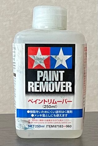 タミヤさんのペイントリムーバーをティッシュに含ませて、塗装をふき取っていきます