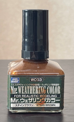 まずはMr.ウェザリングカラー ステインブラウンで錆っぽさや泥汚れっぽい汚しをします