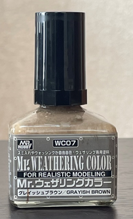 続いて、Mr.ウェザリングカラー グレイッシュブラウンで水垢や砂埃っぽい汚しをします。
