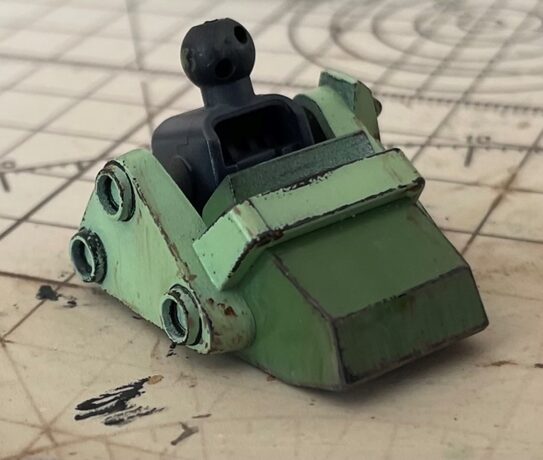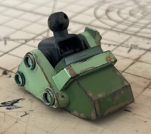 フラットブラック→ケープ→ライトグリーンと塗装していき、筆で塗装をはがします