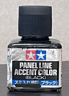 タミヤさんのスミ入れ塗料は蓋の裏に筆がついているので、それを使用します
